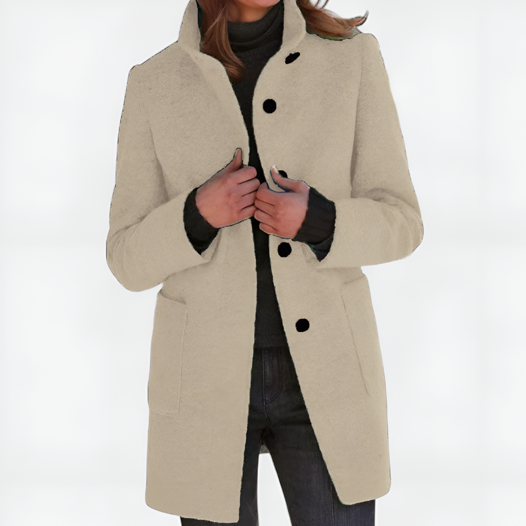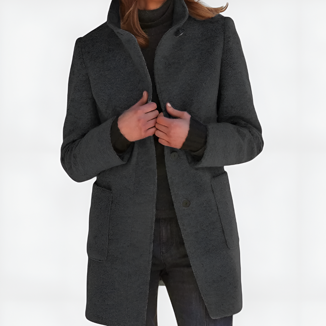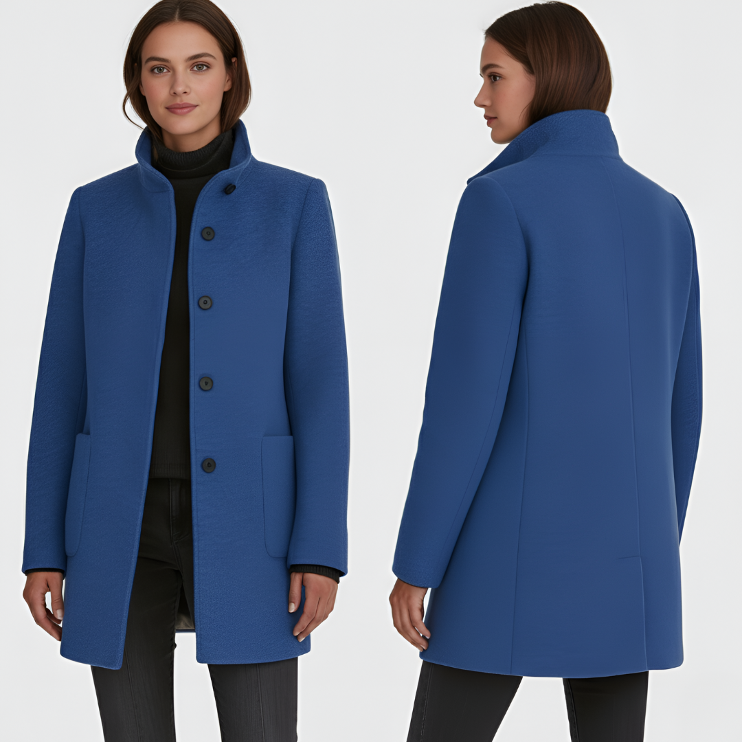 Elle to klasyczny płaszcz z mieszanki wełny, który łączy ciepło, komfort i wyrafinowany styl. Prosty krój oraz subtelne detale nadają mu smukłą sylwetkę, idealną zarówno na co dzień, jak i na bardziej formalne wyjścia. To niezbędny element garderoby, który dodaje klasy w każdym sezonie.