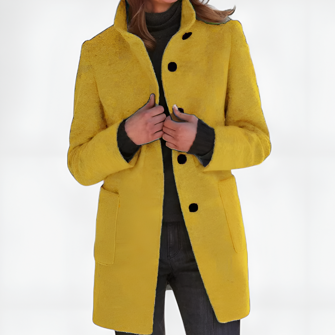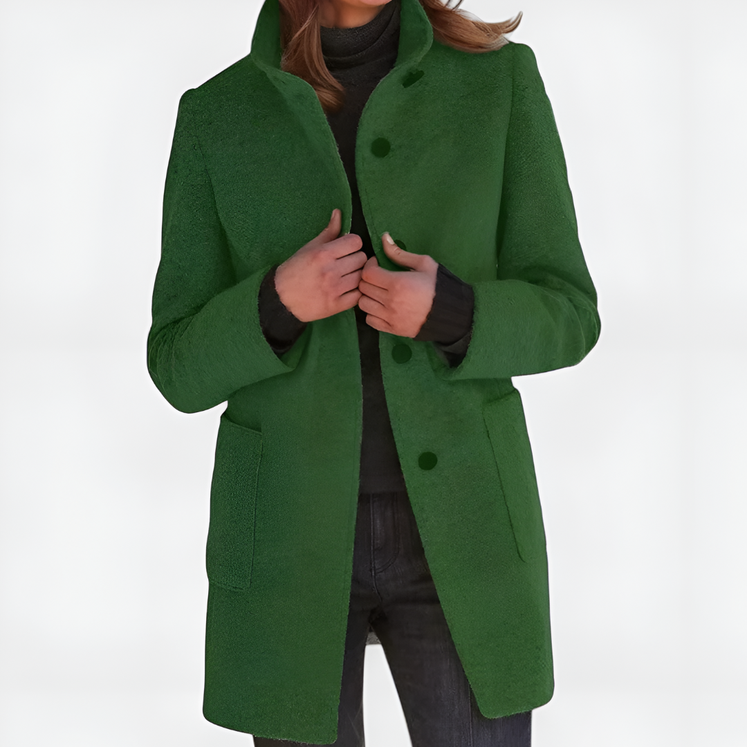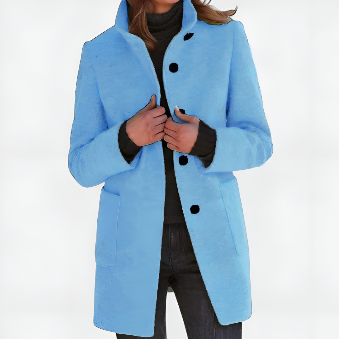 Elle to klasyczny płaszcz z mieszanki wełny, który łączy ciepło, komfort i wyrafinowany styl. Prosty krój oraz subtelne detale nadają mu smukłą sylwetkę, idealną zarówno na co dzień, jak i na bardziej formalne wyjścia. To niezbędny element garderoby, który dodaje klasy w każdym sezonie.